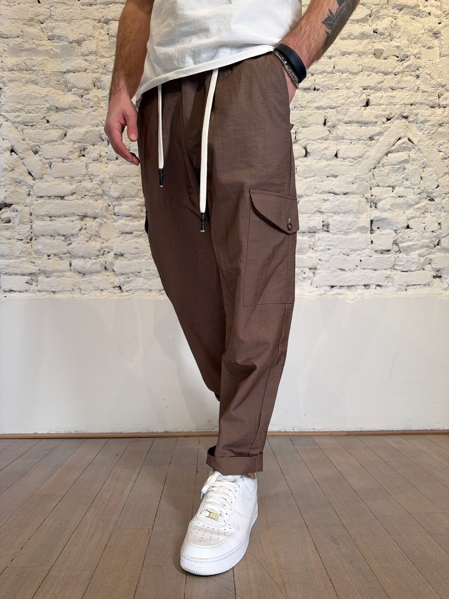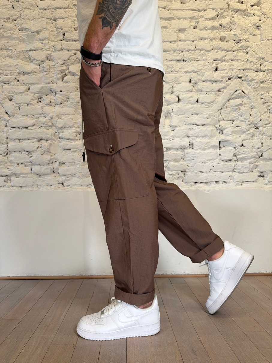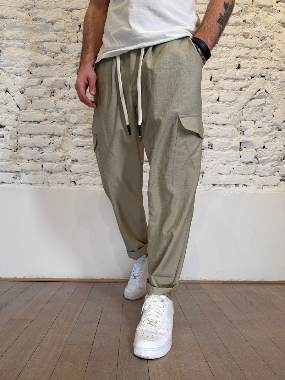 pantalone cargo cropped con tasconi laterali e laccio in vita